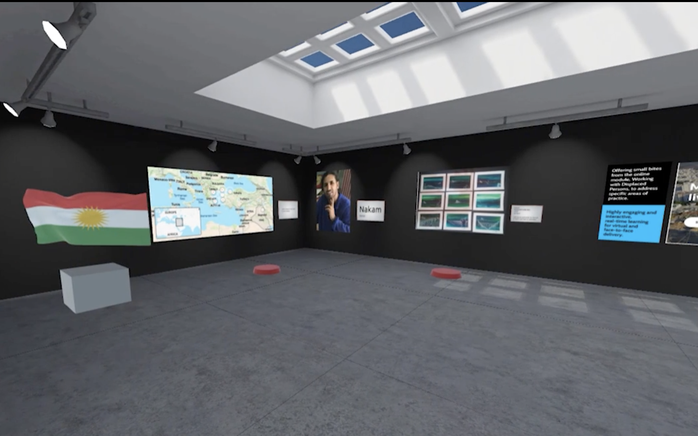 The hub will feature several ‘locations’ to check in, the list of which will be derived from Mary Pipher’s The Middle of Everywhere (2002), where learners will encounter relevant content though selected videos and web links. This ‘exploratoria’ model (Gomes de Siqueira et al., 2021) builds on the success of Hubs in WFOT’s Working with Displaced Persons course, allowing learners to move through the space and engage with a range of materials to direct their own learning (Figure 4).