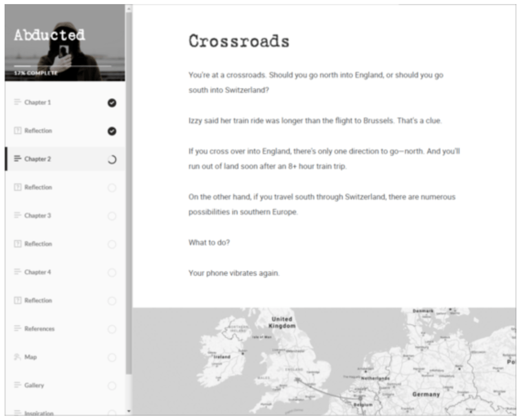 Fair, D. (n.d). Rise: Abducted Adventure Game. E-Learning Heroes. Web Page. Retrieved on 3rd November 2021 fropm: https://community.articulate.com/e-learning-examples/rise-abducted-adventure-game